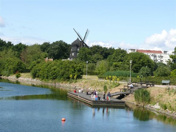 有人在河上划輕艇,旁邊不少的學童正在野餐,我呢,則在欣賞對岸的大風車。